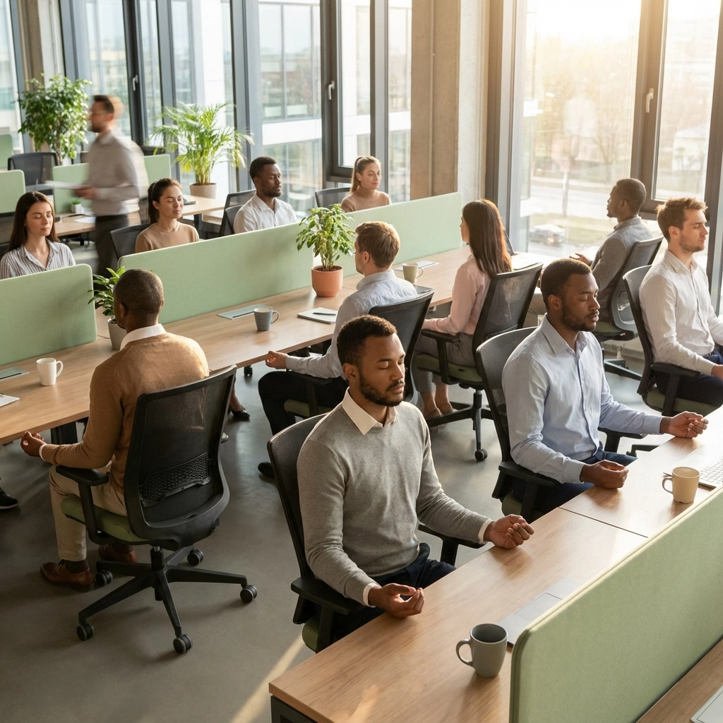 Not the Instagram-perfect version where you need special clothes and a pristine studio. I'm talking about real, practical yoga at work that you can do in your button-down shirt and business pants, right there in your office chair.